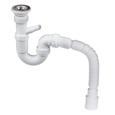 сифон для раковины MASTERPROF 1.1/2″х40мм дополнительный патрубок с отводом, с гибкой трубой 40х40/5