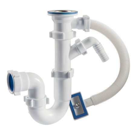 Сифон прямоточный 1 1/2х40, с выпуском с нержавеющей чашкой д70 мм, одним отводом для слива от стиральной машины и прямоугольным переливом для мойки. В комплекте две прокладки на перелив (прямоугольная – на квадратную форму мойки и полукруглая на круглую форму мойки) Необходим отвод в канализацию. Конструкция сифона прямоточная, с увеличенным водяным затвором