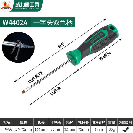 Сильная магнитная отвертка Power Lion (Wynns), крестообразная отвертка промышленного класса, конусная отвертка 3*75 мм, одно слово