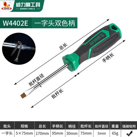 Сильная магнитная отвертка Power Lion (Wynns), крестообразная отвертка промышленного класса, конусная отвертка 5*75 мм, одно слово