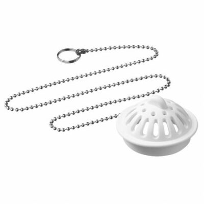 Ситечко-пробка для выпуска. Предотвращает попадание продуктов жизнедеятельности, из санитарно-технического приборов в канализационный слив, тем самым продлевая нормальное рабочее функционирование системы канализации. В комплекте идёт цепочка 50 см.