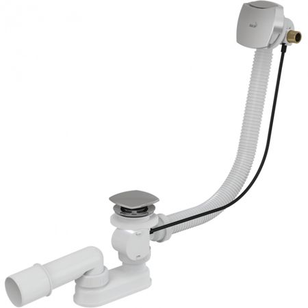 Полуавтоматический слив-перелив для ванны Alcaplast A565CRM2-100 изготавливается из высококачественных материалов. Слив-перелив система с функцией наполнения ванны. Аэратор марки Neoperl удобный доступ и замена. Клапан управления из нержавеющей стали. Вода не течет по стенке ванны, что предотвращает налет. Минимальный отступ от стенки системы в ванной видна лишь поворотная накладка. Простая установка тремя винтами из нержавеющей стали. Мокрый гидрозатвор с вращающимся коленом. Закрытие сливного клапана с помощью троса Боудена. Гибкий шланг системы перелива. Боковая подводка с латунной резьбой G1/2 для предварительно подготовленной воды. Длина сифона для ванны 100 см. Технические характеристики: Гидрозатвор: 50 mm. Сток воды: 48,6 l/min. Скорость перелива: 33,6 l/min. Сопротивление гидрозатвора против давления: 588 Pa. Термическая устойчивость: 95 градусов. В комплекте поставки: Корпус сифона с системой перелива. Поворотная стальная накладка, хромированная. Пробка из хромированного пластика. Хромированная решетка слива из нержавеющей стали. Гидрозатвор сифона из полипропилена, сваренный ультразвуковым методом, устойчив к термическим и химическим воздействиям. Монтажный комплект. Профильное уплотнение.