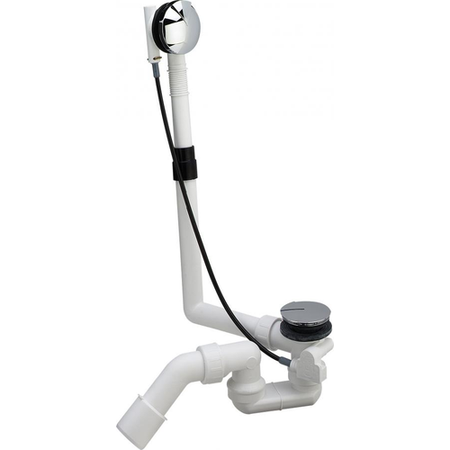 Слив-перелив с сифоном для нестандарт.ванн Multiplex Visign M1, полуавтомат 725 Комплектация — хромированная поворотная накладка переливного отверстия (верхняя), — хромированная пробка донного клапана со штоком, гидрозатвор, — сливное колено 45°, — хромированная розетка сливного отверстия