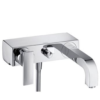 Смеситель Axor Citterio ( Циттерио ) 39400 для ванны, однорычажный. Монтаж настенный, автоматический переключатель ванна/душ, керамический картридж, подводка воды 1/2", подключение для душевого шланга 1/2", максимальный расход воды 22 л/мин, подходит для проточных водонагревателей.