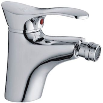 Смеситель для биде. У смесителя одна рукоять чтобы регулировать напор воды. Конструкция смесителей на шпильке подразумевает их установку в специально приготовленное отверстие при помощи креплений. Чаще всего применяются две шпильки, зажимаемые винтами с обратной стороны умывальника или раковины. Смеситель с надежным стационарным изливом. Внутри прибора находится керамический картридж 35 мм, смешивающий воду для получения необходимого показателя температуры.