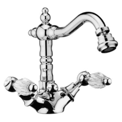 Двухвентильный смеситель для биде с донным клапаном с ручками из кристаллов Swarovski, монтируемый на одно отверстие.
