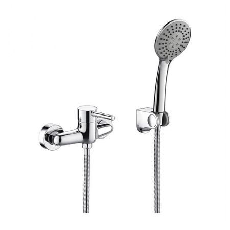 Смеситель для душа Bravat Slim TF9332366CP-01-RUS органично соединил в себе черты стиля «винтаж» и современные линиии и формы. Монтажные элементы, предназначенные для крепления изделий к стене, скрыты внутри круглых хромированных деталей. Управление водой осуществляется с помощью тонкого рычага, напоминающего джойстик. Душ подключен снизу. В комплект также входит ручной душ со шлангом и держатель для него, который крепится к стене. Все изделия комплекта выполнены из латуни с хромированным покрытием. В смесителе установлен керамический картридж, который отличается долговечностью и надежностью в использовании