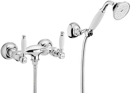 Настенный смеситель для душа Webert Dorian DO760101015 с душевым гарнитуром, без излива. Покрытие: глянцевый хром. Цвет ручек: белый. Материал: латунь (содержание свинца: <0.2%). Расстояние между центрами креплений: 134-166 мм. Стандарт подключения: G1/2. ручной душ75 мм. Шланг 1500 мм.