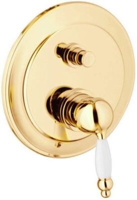 Описание:настенный однорычажный встраиваемый смеситель для ванны, на одно отверстие, в комплекте с внутренней частью, с ручкой, стилизованной под керамику.