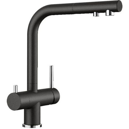 Смеситель для кухни Blanco Fontas-S II 526158 3-в-1-фильтрованная и обычная вода из выдвижного излива: Раздельное управление: рычаг для холодной и горячей воды справа и рычаг для фильтрованной воды слева. Гигиеничный смеситель: отдельный излив с дополнительным носиком для фильтрованной воды — нет смешивания с водопроводной водой. Выдвижной излив с аэраторами для обычной и питьевой воды.
