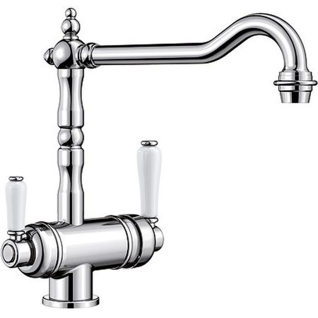 Один совмещенный излив для питьевой и обычной воды с разделением рассекателя.