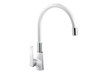 Однорычажный смеситель для кухни с гибким изливом Frap F4458, цвет: белый/хром. Сочетает в себе удобную конструкцию, простоту в установке, универсальный современный дизайн и высокое качество за доступную цену. Превосходно дополнит интерьер любой кухни.