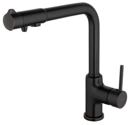 Смеситель для кухни со встроенным фильтром (краном) под питьевую воду Gappo G4390-10, оснащен одной рукоятью для регулировки напора. Прибор оснащен переключателем на обычную и питьевую воду. Оттоки, при этом друг от друга изолированы. Таким образом, водопроводная вода не смешивается с фильтрованной. Аэратор в данном приборе позволяет обеспечить равномерную подачу воды и ее относительноесмягчение. Специальная сетка внутри устройства отфильтровывает разные примеси. Монтируется на шпильке. На нижнюю часть прибора ставится резинка, чтобы смеситель ничего не царапал и не елозил по столешнице, далее вкручиваются шпильки в смеситель. Получившуюся конструкцию ставим в отверстие, насаживаем внизу на крепление и затягиваем Современный смеситель – совмещение классического конструкционного решения и вместе с тем смелого и необычного оформления. Подобная сантехника отлично подойдет тем, кто хочет идти в ногу с нашим временем. К этой категории изделий принадлежит классический тип смесителей, которые изготовлены из латуни – долговечного, прочного, надежного материала. Модели этого вида обрабатываются хромированным покрытием, и в итоге имеют идеальный внешний вид. Прибор обычной округлой формы. Излив прибора способен вращаться, что положительно влияет на функциональность. Оснащен керамическим картриджем, который эффективно смешивает холодную и горячую воду. Также понижается шум подачи воды. Картридж в диаметре 35 мм. Монтаж модели производится на одно отверстие для смесителя. В комплекте идет, инструкция по установке, гарантийный талон.