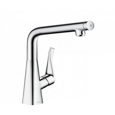14883000 Смеситель для кухни Hansgrohe Metris Select угол поворота излива регулировка на Ÿ3 уровня на 110°, 150° или Ÿ360° вертикальное расположение рукоятки ламинарная струя расход воды 13 л / мин керамический узел смешивания соединительные шланги G 3/8 встроенный клапан обратного тока воды подходит для проточных водонагревателей длина излива: 257 мм