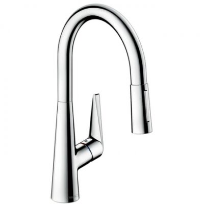 Смеситель для кухни однорычажный 200, с выдвижным душем Характеристики продукта ComfortZone 200 угол поворота излива 110° / 150° может монтироваться близко к стене обычная и душевая струя фиксируемая душевая струя, переключение струи в исходное положение нажатием кнопки магнитная система крепления душа MagFit душевой шланг Quick-Connect подходит для проточных водонагревателей