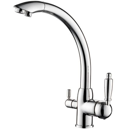 Смеситель для кухни со встроенным фильтром (краном) под питьевую воду Ledeme L4455-3, данная модель даёт возможность с лёгкостью регулировать температуру и напор воды, благодаря однорычажному управлению. Прибор имеет переключатель для питьевой и обычной воды. Оттоки, при этом друг от друга изолированы. Таким образом, обычная водопроводная вода с фильтрованной не будет смешиваться. Аэратор обеспечивает равномерный поток воды, из-за того, что металлическая сеточка будет рассеивать напор, вода становится мягче. Сеточка поможет отфильтровать примеси и позволит сэкономить более пяти кубов воды в течение года. Данный тип смесителей отличается наиболее простым видом установки, прибор фиксируется на раковине при помощи гайки. Гайка очень надежно прижимает его к поверхности, закручиваясь с другой стороны монтажного отверстия. Современные приборы – соединение классических конструкционных решений и одновременно с этим необычного и смелого оформления. Подобного рода сантехника идеально подойдет тем, кто хочет шагать в ногу с нашим временем. К этой категории изделий относится классический вид приборов, созданных из латуни – надежного, долговечного, прочного материала. Модели этого типа покрываются специальным покрытием, благодаря чему имеют безукоризненный внешний вид. традиционный вариант оформления сантехнического смесителя. Округлая форма позволяет прибору выглядеть максимально привлекательно и стильно для глаз человека. Излив имеет возможность вращения, что напрямую положительно влияет на функциональность. При установке данной модели достаточно, когда в умывальнике или раковине имеется всего одно отверстие , отведенное под смеситель. В основном, данный подход гарантирует простой и быстрый монтаж. В комплекте идет, инструкция по установке, гарантийный талон.