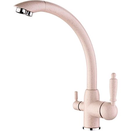 Смеситель для кухни со встроенным фильтром (краном) под питьевую воду Ledeme L4455K-3, Подобные Приборы оснащены встроенным фильтром, очищающий воду. Модели имеют специальный переключатель, чтобы выбирать, какую воду вы желаете получить – обычную или фильтрованную. Наличие аэратора в данном приборе позволяет обеспечить равномерный поток воды , а также ее смягчение. Сетка внутри устройства отфильтровывает разные примеси. Модель устанавливается с помощью гайки, нижняя часть смесителя вставляется в отверстие для монтажа и затягивается гайкой. Данный прибор выполнен в современном стиле, оригинальная модель в явно выраженном дизайнерском исполнении. К этой категории товаров принадлежит классический тип смесителей, которые сделаны из латуни – прочного, надежного и долговечного материала. Модели такого вида обрабатываются высококачественным покрытием, благодаря чему имеют безукоризненный внешний вид. Модель традиционной округлой формы. Модель, обладающая поворотным изливом. Его можно вращать в различные стороны, что значительно повышает производительность применения сантехнического прибора. Имеет надежный керамический картридж, который качественно смешивает горячую и холодную воду. Помимо этого картридж понижает шум от импульсов подачи воды. Картридж имеет диаметр 35 миллиметра. При монтаже достаточно, если в умывальнике или раковине имеется одно отверстие под прибор. В основном, данный подход гарантирует простой и быстрый монтаж. В комплекте идет, инструкция по установке, гарантийный талон.