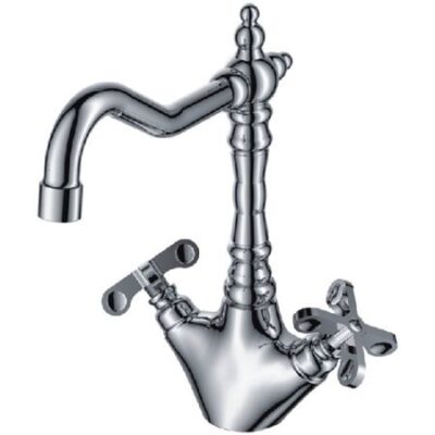 Смеситель для кухни Ledeme L4483, классический вариант, обладающий двумя вентилями для контроля потока воды. Аэратор в смесителях поможет обеспечить равномерный поток воды , а также ее относительное смягчение. Специальная сетка отфильтровывает различные примеси. Монтируется на шпильке. На нижнюю часть прибора ставится резинка, чтобы смеситель ничего не царапал и не елозил по столешнице, затем вкручиваются шпильки. Данную конструкцию устанавливаем в отверстие, насаживаем на крепление и затягиваем гайками. Прибор выполнен в востребованном в наши дни стиле ретро. К представленной категории изделий принадлежит классический вид приборов, которые произведены из латуни – долговечного, прочного, надежного материала. Обычно модели такого вида обрабатываются специальным хромированным покрытием, благодаря чему обладают безукоризненным внешним видом. Излив имеет возможность вращения, что напрямую положительно влияет на практичность. Данный прибор оснащен кран-буксой. Монтаж данной модели выполняется на 1 отверстие для смесителя. В комплекте идет, инструкция по установке, гарантийный талон.