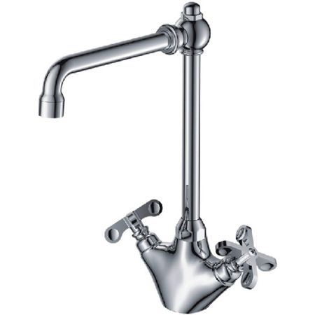 Смеситель для кухни Ledeme L4583, имеется два рычага, каждый регулирует температуру и напор воды. Качественный аэратор гарантирует равномерный поток, по причине того, что металлическая сеточка рассеивает напор, вода смягчается. Сеточка отфильтрует примеси и сэкономит больше 5 кубометров воды на протяжении года. Конструкция смесителей на шпильке подразумевает их установку в специально подготовленное отверстие посредством креплений. Чаще всего используются две шпильки, зажимаемые винтами с обратной стороны умывальника или раковины. модель в классическом стиле. Материал прибора — латунь, проверенный красивый материал, который обеспечивает великолепное нанесение хромированного покрытия. Излив прибора имеет возможность вращения, что повышает практичность. Смеситель оборудован качественной керамической кран-буксой. Установка представленной модели выполняется на одно отверстие для смесителя. В комплекте идет, инструкция по установке, гарантийный талон.