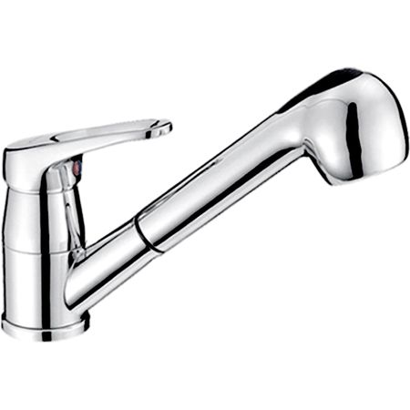 Смеситель для кухни с выдвижной лейкой Ledeme L6013, данная модель позволит быстро контролировать напор и температуру воды, посредством однорычажного управления. Наличие аэратора в смесителе обеспечивает равномерную подачу воды и ее относительное смягчение. Сетка в устройстве отфильтровывает примеси. устанавливается на шпильке. Внизу прибора устанавливается резинка, чтобы смеситель ничего не поцарапал и не елозил по столешнице, затем вкручиваются шпильки. Данную конструкцию устанавливаем в отверстие, насаживаем на крепление и затягиваем гайками, чтобы Прибор выполнен в современном стиле, оригинальная модель в явно выраженном дизайнерском исполнении. Основной материал прибора — латунь, проверенный материал высочайшего качества, который обеспечивает великолепное напыление хромированного покрытия. Смеситель оборудуется выдвижным изливом, крепящимся на гибком шланге. При потребности он вытягивается из основания прибора. Такие модели имеют несколько режимов функционирования, как например, душ или аэрированная струя. Излив прибора имеет возможность вращения, что напрямую положительно влияет на практичность. Оснащен надежным керамическим картриджем, который эффективно смешивает холодную и горячую воду. Кроме этого картридж понижает шум подачи воды. Картридж имеет диаметр 35 миллиметра. Установка представленной модели осуществляется на одно отверстие под смеситель. В комплекте идет, инструкция по установке, гарантийный талон.