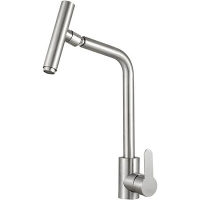 Высокий излив смесителя регулируется по высоте, что обеспечивает удобство при мытье больших кастрюль и других кухонных принадлежностей, а также способствует более комфортному использованию. Смеситель для кухни оснащён однорычажным механизмом, что позволяет легко регулировать напор и температуру воды, делая процесс использования максимально простым и удобным.