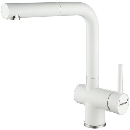 Смеситель для кухни Paulmark Dosse Do214418-431. Изготовлен из нержавеющей стали AISI 304. Нержавеющая сталь AISI 304 легирована никелем, марганцем, медью и хромом, что обеспечивает ей повышенную прочность и устойчивость в коррозионных средах, такая сталь подвержена деформациям.