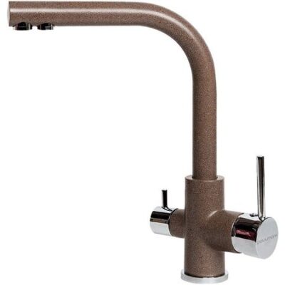 Однорычажный смеситель для кухонной мойки Paulmark Essen Es213011-307. Цвет: терракот/хром. Универсальный дизайн изделия дополнит большинство кухонь в современном стиле. Оснащен дополнительным краном с подключением фильтра питьевой воды. Изготовлен из высококачественной латуни с многослойным и стойким к истиранию покрытием. Керамический картридж Paulmark 40 мм с ресурсом открываний/закрываний в 500 000 раз обеспечивает точную настройку температуры и напора воды. Излив с поворотом на 360 градусов и отдельным каналом для потока фильтрованной воды. Съемный пластиковый аэратор Caskad с защитой от известковых отложений делает струю мягкой, ровной и экономичной. Гибкая подводка в оплетке из нержавеющей стали длиной 40 см, G 1/2. Простой и быстрый монтаж. В комплекте поставки: смеситель для кухни, гибкая подводка, усиленное крепление, переходник для подключения фильтра.