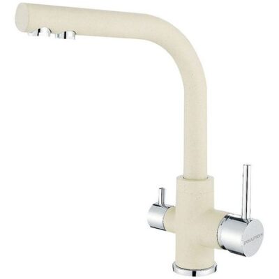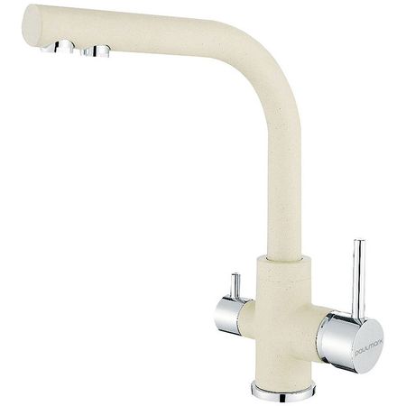 Однорычажный смеситель для кухонной мойки Paulmark Essen Es213011-428. Цвет: шампань. Универсальный дизайн изделия дополнит большинство кухонь в современном стиле. Оснащен дополнительным краном с подключением фильтра питьевой воды. Изготовлен из высококачественной латуни с многослойным и стойким к истиранию покрытием. Керамический картридж Paulmark 40 мм с ресурсом открываний/закрываний в 500 000 раз обеспечивает точную настройку температуры и напора воды. Излив с поворотом на 360 градусов и отдельным каналом для потока фильтрованной воды. Съемный пластиковый аэратор Caskad с защитой от известковых отложений делает струю мягкой, ровной и экономичной. Гибкая подводка в оплетке из нержавеющей стали длиной 40 см, G 1/2. Простой и быстрый монтаж. В комплекте поставки: смеситель для кухни, гибкая подводка, усиленное крепление, переходник для подключения фильтра.