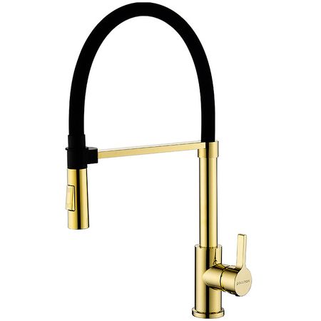 Смеситель для кухни Paulmark Halt Ha214021-G. Изготовлен из высококачественной латуни, которая отвечает высочайшим европейским стандартам качества, не содержит свинца, не разрушается со временем и безопасна для здоровья.