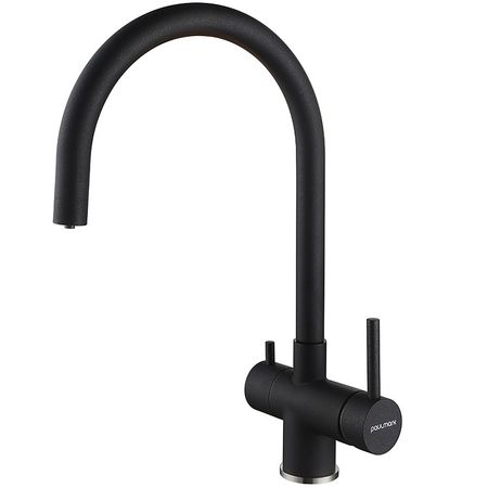Смеситель для кухни Paulmark Heller He213218-418. Изготовлен из нержавеющей стали AISI 304. Нержавеющая сталь AISI 304 легирована никелем, марганцем, медью и хромом, что обеспечивает ей повышенную прочность и устойчивость в коррозионных средах, такая сталь подвержена деформациям.