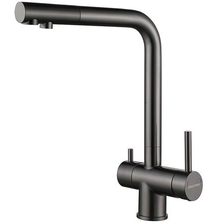 Высокий смеситель для кухни Paulmark Skalen Sk213020-GM однорычажный, с поворотным изливом, с возможностью подключения фильтра питьевой воды. Покрытие PVD является наиболее экологически чистым. Особый метод напыления покрытия путем прямой конденсации пара наносимого материала позволяет поверхности смесителя быть особенно устойчивой к появлению царапин и истиранию. Такое покрытие является защитным слоем, оно чрезвычайно плотно и равномерно прилегает к основе, не содержит микротрещин. Долговечный керамический картридж.