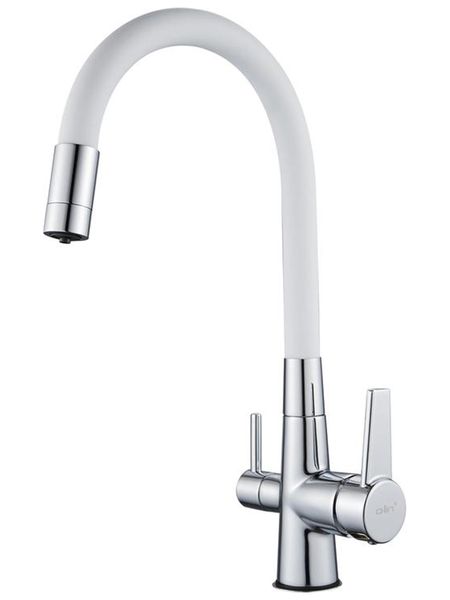 Характеристики:Цвет: хром/белыйПоверхность: глянцевая Стиль: современный Материал: латунь Монтаж: на мойкуУправление: рычажноеПодключение фильтра для воды: даФорма: округлая Монтаж: на мойку Длина излива, см: 27 Высота излива, см: 21,5Ширина, см: 14,5Длина (глубина), см: 31,2 Высота, см: 38Вращение излива: поворотныйАэратор: даВыдвижной излив: нет Тип подводки: гибкая Стандарт подводки: 1/2Режим экономии воды: да Механизм: керамический картридж Гибкий излив: даРежим душ излива: нетОтверстия для монтажа: 1 Комплектация: смеситель, подводка