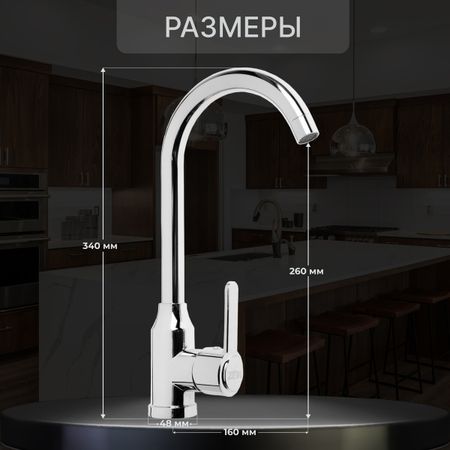 Смеситель для кухни zein z3701, поворотный излив высотой 26 см, abs-пластик, хром