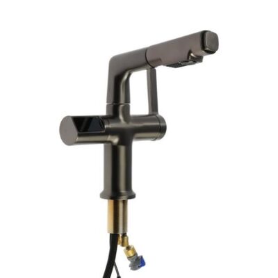 Смеситель для кухни ZEIN предназначен для установки на горизонтальной поверхности — кухонной мойке или столешнице.Вытяжной излив добавит функциональности смесителю — можно вымыть объемную посуду, дотянуться до труднодоступных мест и любого содержимого мойки.Аэратор может вытягиваться и имеет два режима подачи воды, что делает его более удобным и многофункциональным.На корпусе присутствует цифровой экран, по которому можно контролировать температуру воды.Сетка фильтрации очищает воду от нежелательных примесей и загрязнений.Удобное переключение горячей/холодной воды рычагом позволяет регулировать температуру воды до наиболее комфортных значений одной рукой.