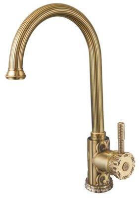 Винтажный стиль смесителя отлично дополнит классический интерьер Вашей кухни. Сочетание необычной формы и рельефного рисунка делают изделие уникальным, не похожим на другие.
