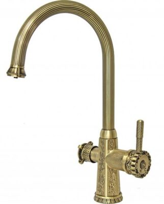 Винтажный смеситель Zorg ZA-54KF BR в античном исполнении под бронзу представляет коллекцию смесителей Zorg Antic. Смеситель производится из латуни с последующим приданием поверхности смесителя бронзового оттенка под старину. Рельефный рисунок на смесителе с элементами состаренной бронзы придает ему оригинальность и изысканный стиль.