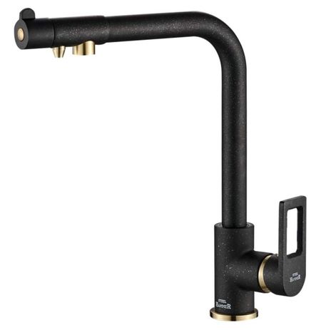 Смеситель под фильтр 2 в 1 для кухни модель SH 572 BLACK BR представляет коллекцию смесителей Steel Hammer. Эта модель производится из латуни с последующим приданием поверхности смесителя благородного цвета бронзового оттенка. При изготовлении применяется технология PVD-покрытия. Такое покрытие нанесено специальным способом и не стирается по прошествии времени. Оригинальный классический дизайн в совокупности с удобными размерами кухонного смесителя позволяет использовать его в полной мере . Прекрасно гармонирует с гранитными кухонными мойками других производителей.