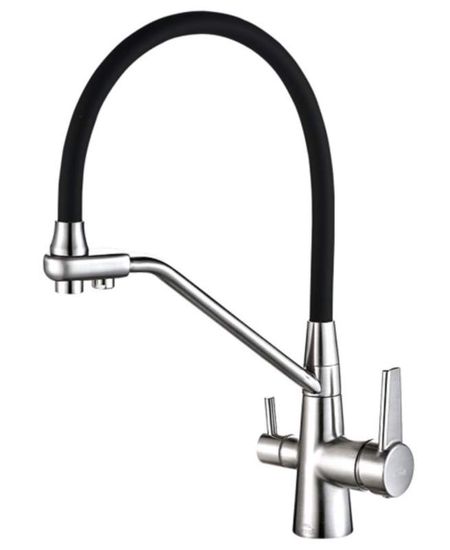 В смесителе применена технология "двойного канала", которая позволяет подключить питьевой фильтр сразу к смесителю. Вода подается не смешиваясь по разным каналам. Рукоятка управления водопроводной водой находится справа от носика, управление питьевой водой — слева.