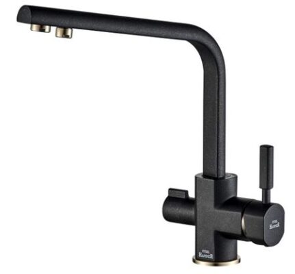 В смесителе применена технология "двойного канала", которая позволяет подключить питьевой фильтр сразу к смесителю. Вода подается не смешиваясь по разным каналам. Рукоятка управления водопроводной водой находится справа, управление питьевой водой — слева.