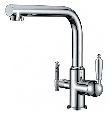 Технология комбинированного смесителя Зорг два в одном позволяет получать водопроводную и очищенную воду из одного смесителя. Благодаря "двойному каналу" в изливе смесителя, вода подается не смешиваясь по разным каналам. Рычаг управления водопроводной водой справа от излива, управление питьевой водой — слева.