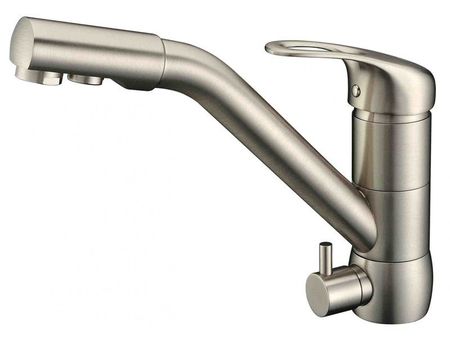 Технология комбинированного смесителя Зорг два в одном позволяет получать водопроводную и очищенную воду из одного смесителя. Благодаря "двойному каналу" в изливе смесителя ZORG ZR 400 KF-12, вода подается не смешиваясь по разным каналам. Рычаг управления водопроводной водой сверху, управление питьевой водой — справа на корпусе.
