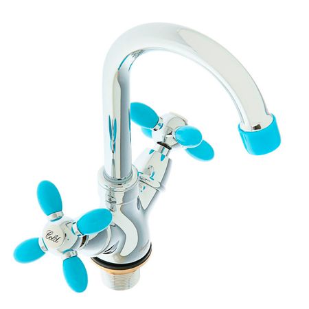 Смеситель для раковины Accoona A9482M, двухрычажный, с гайкой, синий/хром