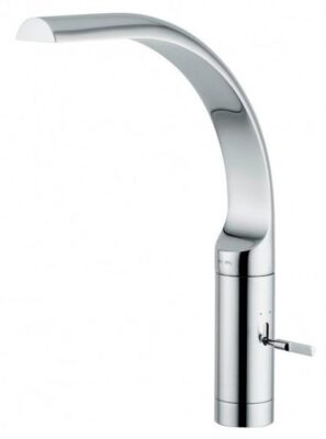 Минимализм, управление с помощью изящного джойстика. Очень высокий излив. Подходит для раковин-чаш. Легко фиксируется температура, а при движении джойстика по вертикали изменяется поток воды. Скрытый аэратор обеспечивает совершенство дизайна.