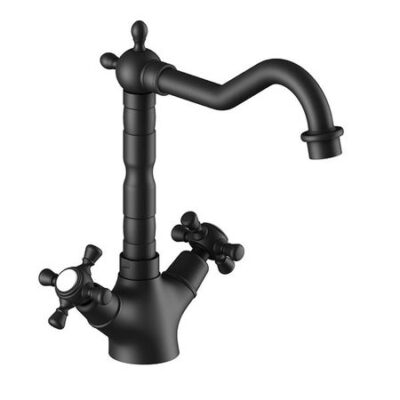 Двухвентильный смеситель с поворотным изливом, монтируемый в одно отверстие. Имеет долгий срок эксплуатации за счет качественных деталей, неприхотлив в уходе. Станет прекрасным дополнением ванной комнаты.