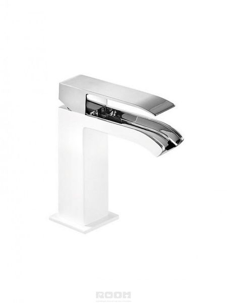 Tres Cuadro Exclusive 00610101BLD Однорычажный смеситель для раковины с каскадным изливом. Малый. Монтаж горизонтальный на одно отверстие. В комплекте с гибкой подводкой 3/8 и сливным клапаном 1 1/4”. Цв. белый/хром. (Заводской артикул 006.101.01.BL.D).