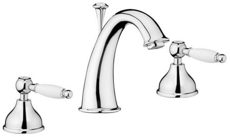 Описание:смеситель для раковины двухвентильный, с ручками, стилизованными под керамику, устанавливаемый в три отверстия, с донным клапаном.