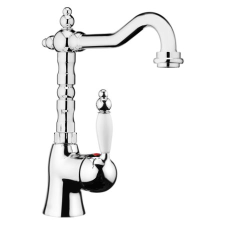 Описание:смеситель для раковины однорычажный, с одной ручкой, стилизованной под керамику, устанавливаемый в одно отверстие.