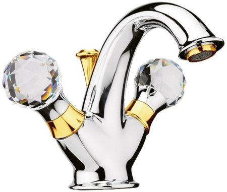 Описание:двухвентильный смеситель для раковины, с ручками, украшенными кристаллами Swarovski, устанавливаемый в одно отверстие, с донным клапаном.