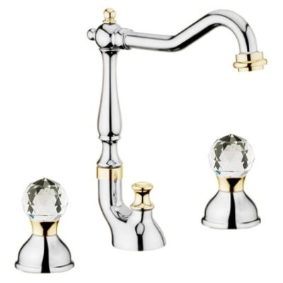 Главная » Строительство и ремонт Смеситель для раковины Webert Karenina КА750202 Хром/золото/кристаллы Swarovski Просмотров 4 Смеситель для раковины Webert Karenina КА750202017 , с донным клапаном. Цвет: глянцевый хром/золото. Ручки: кристаллы Swarovski. Материал: латунь (содержание свинца: <0.2%). излив 165 мм. Аэратор. Донный клапан G1 1/4. Гибкая подводка. Webert