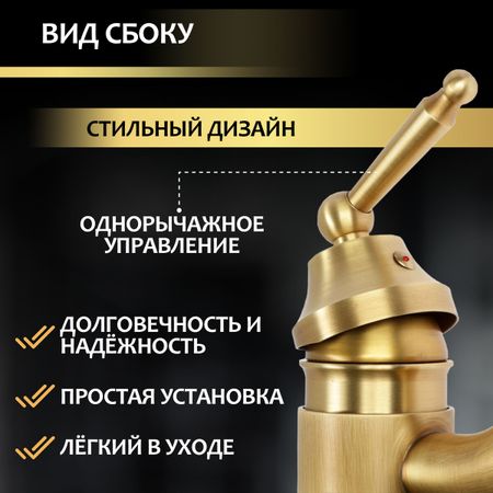 Смеситель для раковины ZEIN Ретро, изогнутый излив, без подводки, латунь, цвет бронза. <b> Характеристики:</b> <ul> <li> Высота смесителя: 22,5 см.</li> <li> Высота излива: 11,5 см.</li> <li> Длина смесителя: 21,5 см.</li> <li> Длина излива: 17,5 см.</li> <li> Диаметр основания: 6 см.</li> </ul>